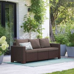 Corfu box - это элегантный мебельный гарнитур с фактурой, напоминающей ротанг, который состоит из двух кресел, двухместного дивана и столика-сундука. Продукт оснащён мягкими подушками сидений. В столе-сундуке всегда можно спрятать вещи от дождя. Мебель с легкой и одновременно устойчивой конструкцией красиво впишется в любое приусадебное пространство, такое как сад или терраса. Набор очень легко чистится. Изготовлен из стойкого к воздействию УФ-излучения пластмассы.