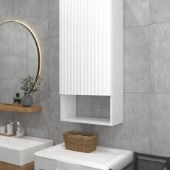 Белый шкаф с рифлёным фасадом будет отлично и стильно смотреться как в ванной, так и в туалете.
