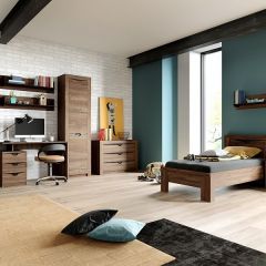 Шкаф оснащен удобными ящиками и полками, а также пространством для вертикального хранения вещей.